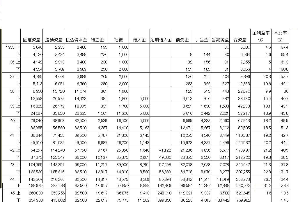 1942年上期以降自己資本で固定資産を賄うことができなくなった.