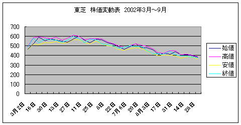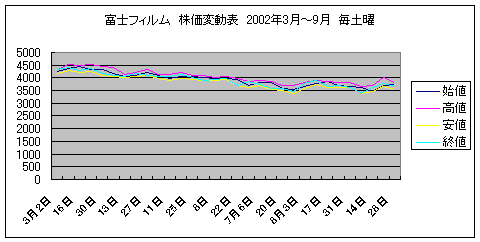 2002年サッカーFIFAワールドカップのオフィシャルスポンサーであった東芝,東京電信電話(NTT),富士フィルムを調べた(資料A).大会期間は6月である.東京電信電話(NTT)は5月下旬〜6月中旬に株価が上がっている.しかし,同じオフィシャルスポンサーである東芝,富士フィルムは目立った変化はない.むしろ下落している.