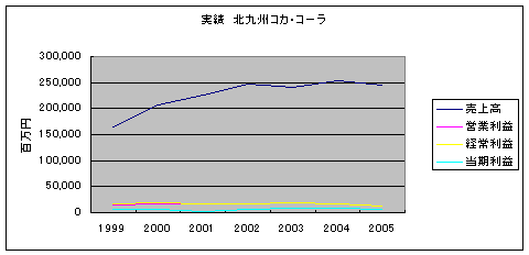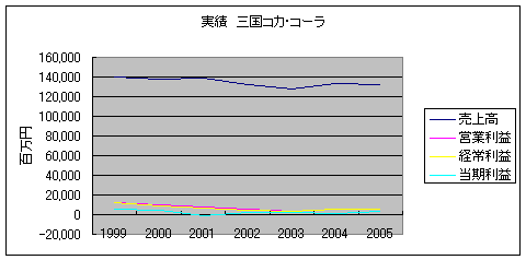 北九州コカ・コーラ,三国コカ・コーラ,中京コカ・コーラの3社の利益の変化を調べた(資料C).大会が行われた1998年の資料がなく,1999年から2005年までの資料になっている.よって,1998年の世界バレーの公式飲料になったことによる,利益の変化を見ることはできない.しかし,コカ・コーラは,2002年のサッカーFIFAワールドカップのオフィシャルスポンサーになっていた.ここでは,2002年のサッカーFIFAワールドカップのオフィシャルスポンサーになったことによる利益の変化を見る.