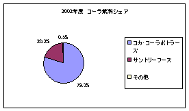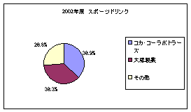 コカ・コーラはコーラ飲料とスポーツドリンクのシェアを調べた(資料F).この資料も残念ながら図書館に1998年の記録が残っていなかった.よって2002年とその前後のシェアを見ることにする.コーラ飲料は,大会前の1999年から,大会後の2005年まで大きな変化はなく,安定している.コカ・コーラボトラーズとサントリーフーズで90%以上を占めている.スポーツドリンクは変化が見られる.2000年までは50%以上のシェアを誇っていた大塚製薬を2001年にコカ・コーラボトラーズが抜いてトップに立った.2001年以降はコカ・コーラボトラーズがトップに立ったままである.コカ・コーラボトラーズのシェアが急激に増えたというわけではなく,大塚製薬のシェアが減り,その他の企業のシェアが増えたことがわかる.