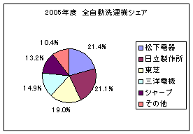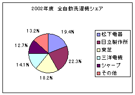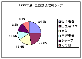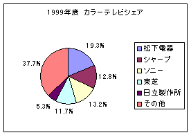 東芝は全自動洗濯機とカラーテレビのシェアを見る(資料G).全自動洗濯機を見ると,大きな変化はなく,変化といえば松下電器と日立製作所が入れ替りをしていることぐらいである.東芝にも大きな変化もなく,常に3位を維持していることがわかる.カラーテレビで目立つのは,シャープのシェア変動が激しいことぐらいである.東芝のシェアは,周りの変動が激しくても安定している.