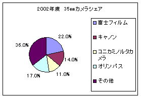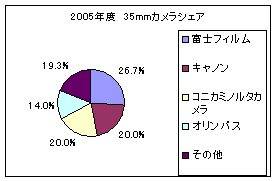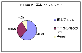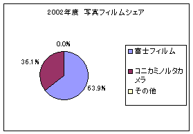 富士フィルムについては,35oカメラと写真フィルムのシェアを調べた(資料I).35oカメラは,2002年の大会前では常に20%弱を維持している.大会後は,25%までシェアが上がっている.写真フィルムは,大会があった2002年まで富士フィルムとコニカミノルタの2社しかなかった.しかし,大会後はその他の企業も参入してきた.富士フィルムもコニカミノルタも,その他の企業にシェアを取られているのがわかる.