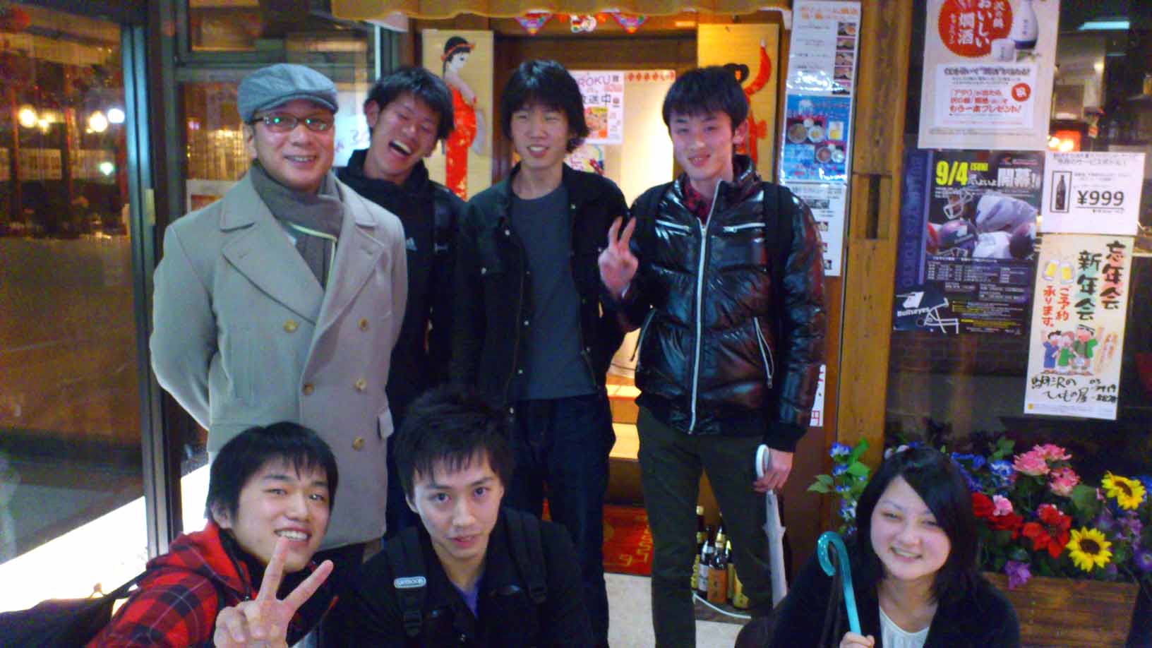 ここは角2階の餃子屋の前で,2011 年の忘年会の後らしい.