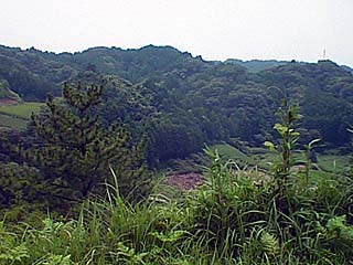 二の丸(横地神社)参道前(52 kB) にバイクを停めた(千畳敷から撮影).