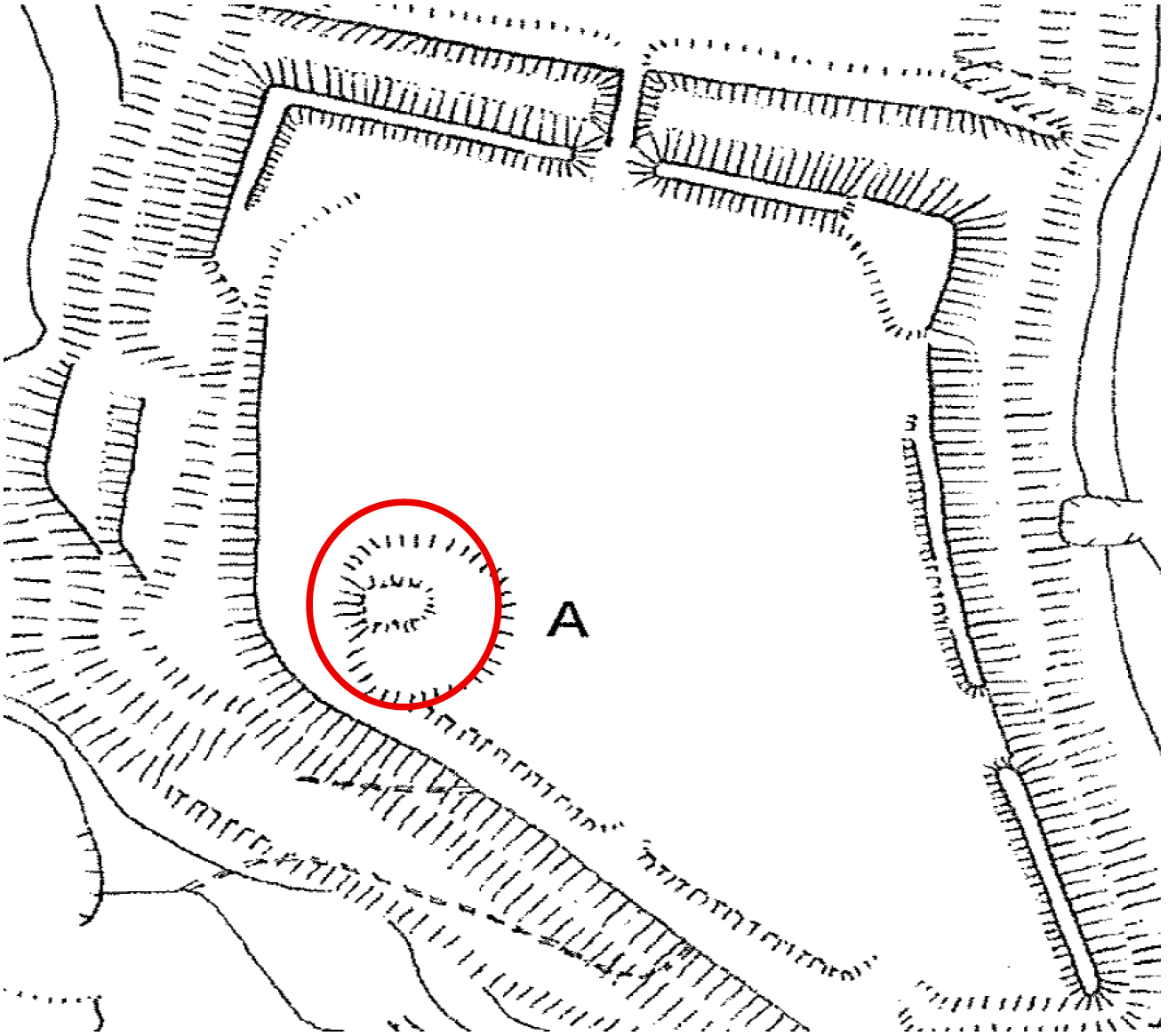 図7 高月城(東京都八王子市)(西股総生作図に加筆)(虎口の両側に櫓台。)