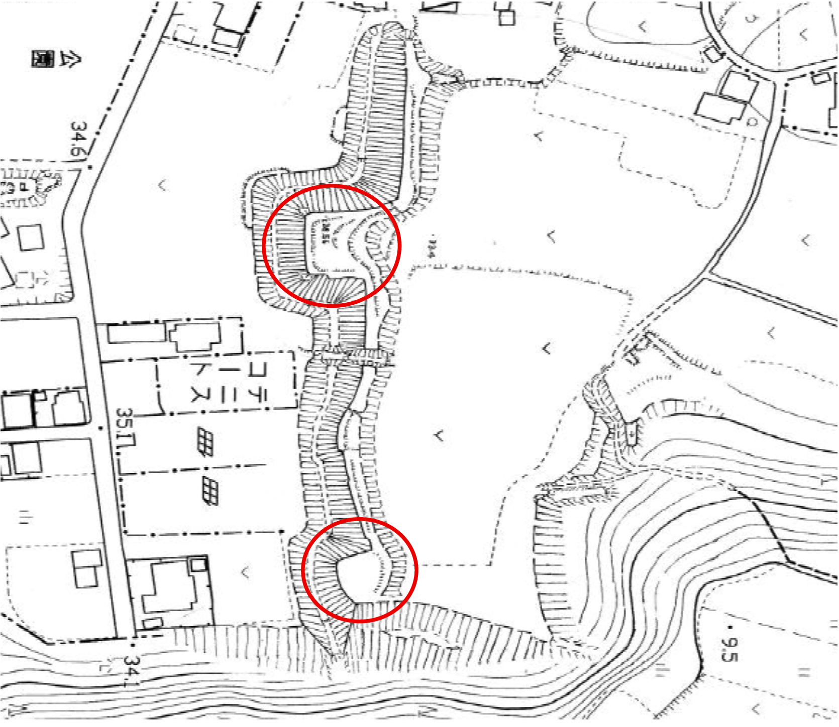 ① 塁線や堀・堀切と組み合わさり高低差を利用して堀部を制圧するもの。